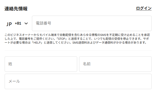 6.連絡先情報、(お電話番号、お名前、メールアドレス)を入力します。