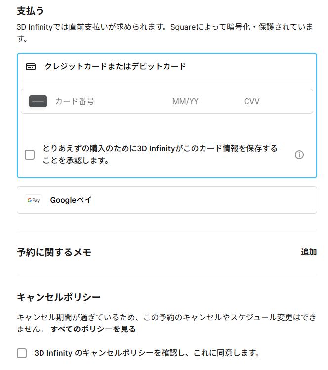 7.お支払い方法(クレジットカード、又はGoogleペイ)を選択し、必要事項を入力します。